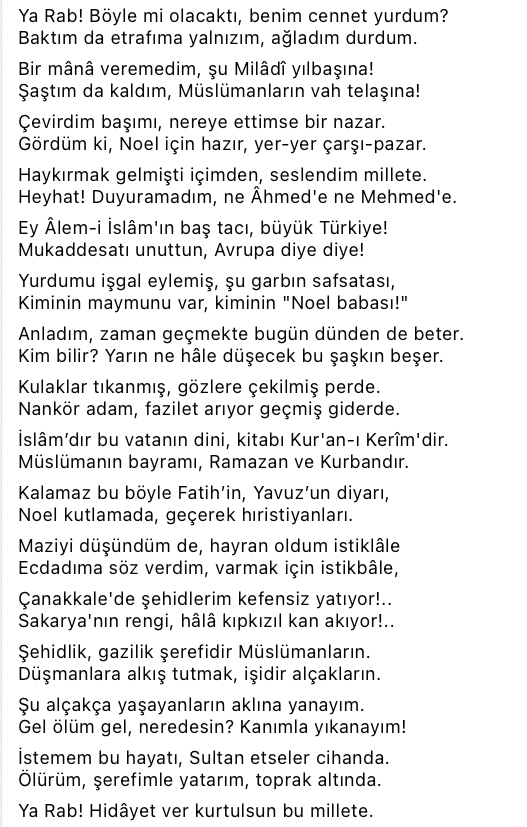 Bu arada bu vesile ile bu şiirin Mehmet Akif Ersoy’a ait olmadığını da okurlarımıza açıklamış bulunalım.