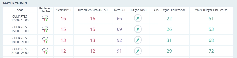 Beykoz’da bu saatler arasında rüzgarın şiddetinin 70 km saatten fazla olacağı ve yağmurlu olacağı belirtiliyor.