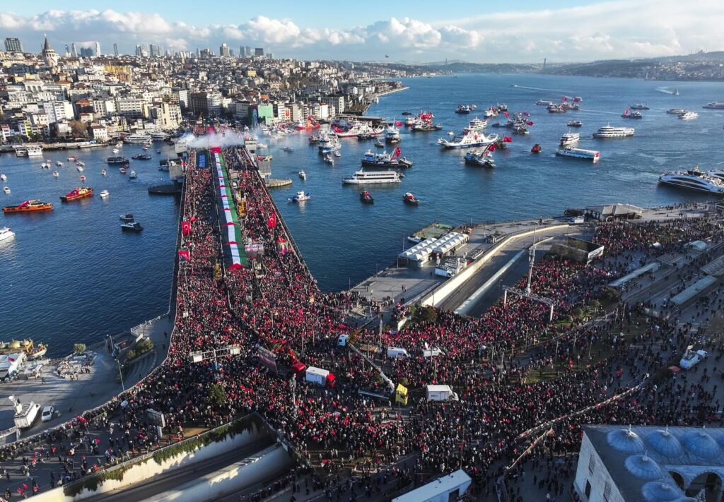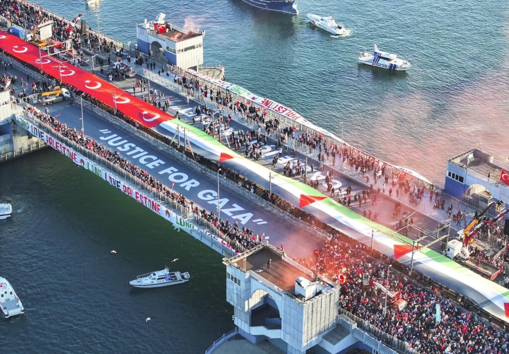 Beykoz’u yöneten iki isim Galata Köprüsünde Filistin’e destek vermek ve Gazze’de yaşananları unutturmamak üzere düzenlenen mitinge katıldılar.