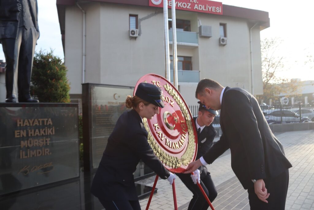 Programda Beykoz Kaymakamı Dr. Fatih Ürkmezer, Beykoz Belediye Başkan Vekili Özlem Vural Gürzel ve İstanbul Boğaz Komutanı Tuğamiral Özgür Erken tarafından Kaymakamlık, Belediye Başkanlığı ve Garnizon Komutanlığı çelenkleri Atatürk anıta sunuldu. Çelenklerin sunulmasından sonra saat 09.05’te tüm Beykoz’da çalan sirenlerle birlikte Gazi Mustafa Kemal Atatürk anısına 2 dakikalık saygı duruşunda bulunularak devamında İstiklal Marşımız okundu ve tören sona erdi.