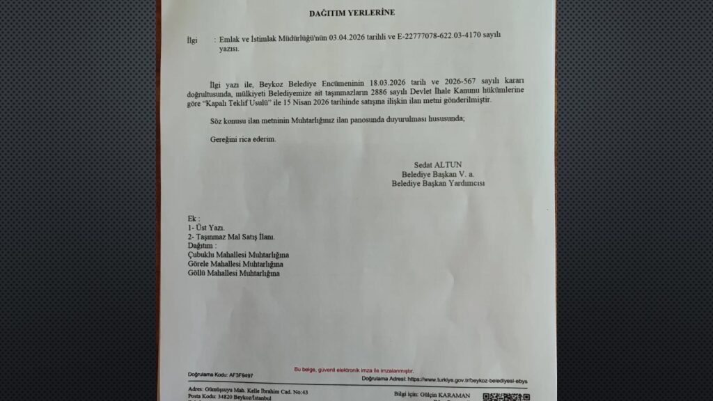 14.04.2026- Çubuklu Mahalle Muhtarı Hüseyin Hüsnü Kolcu Beykoz Belediyesi’nden kendisine gelen evrağı DİKKAT ÇOK ÖNEMLİ notu ile paylaştı ve evrağın kendisine çok geç gelmesi nedeni ile de sitemde bulundu.