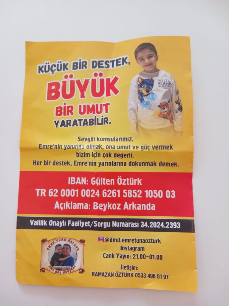 26.12.2025- İçimizden biri Beykoz’un çocuğu 8 yaşındaki Emre Tuna Öztürk, DMD-Duchenne Musküler Distrofi hastalığı ile mücadele ediyor.