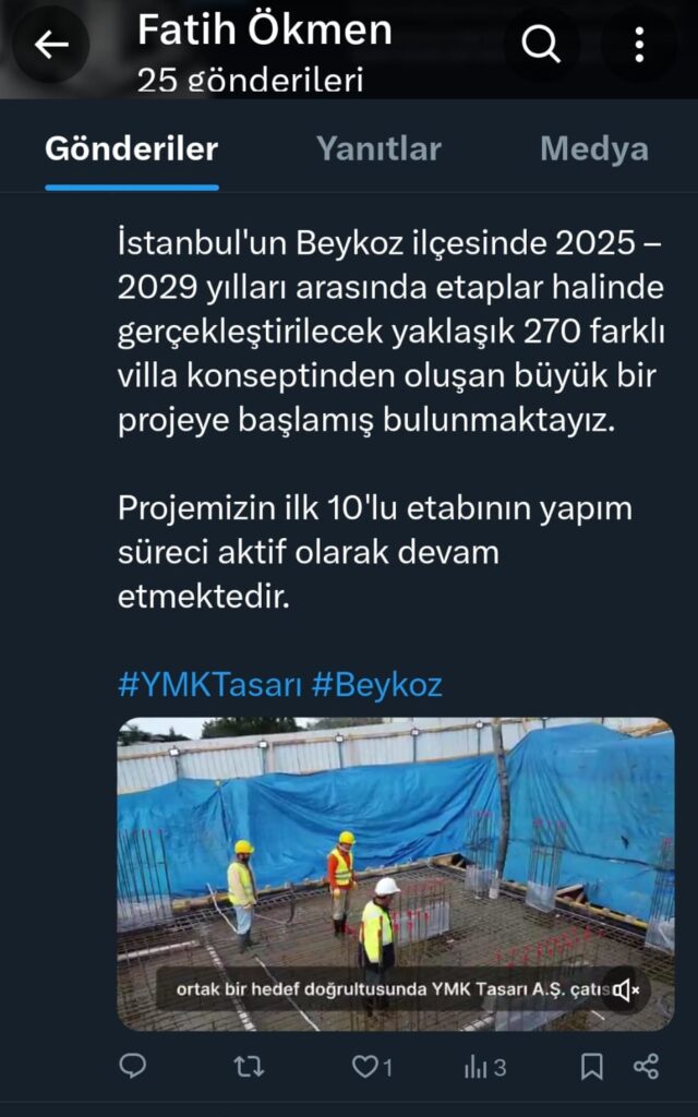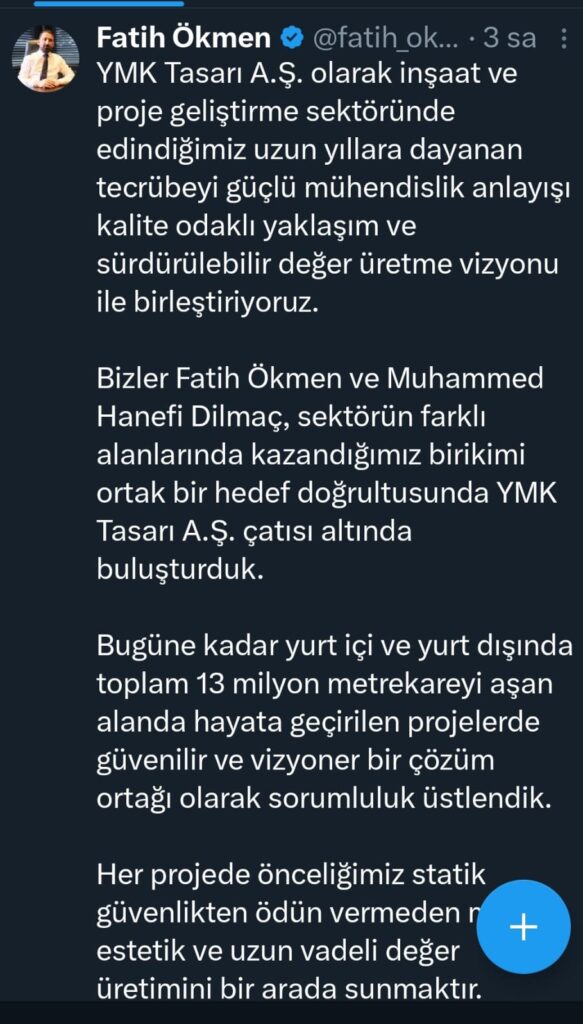 YMK Tasarı A.Ş Ortağı Fatih Öktem konuya ilişkin sosyal medya hesabından şu duyuruyu yaptı;