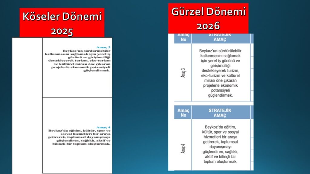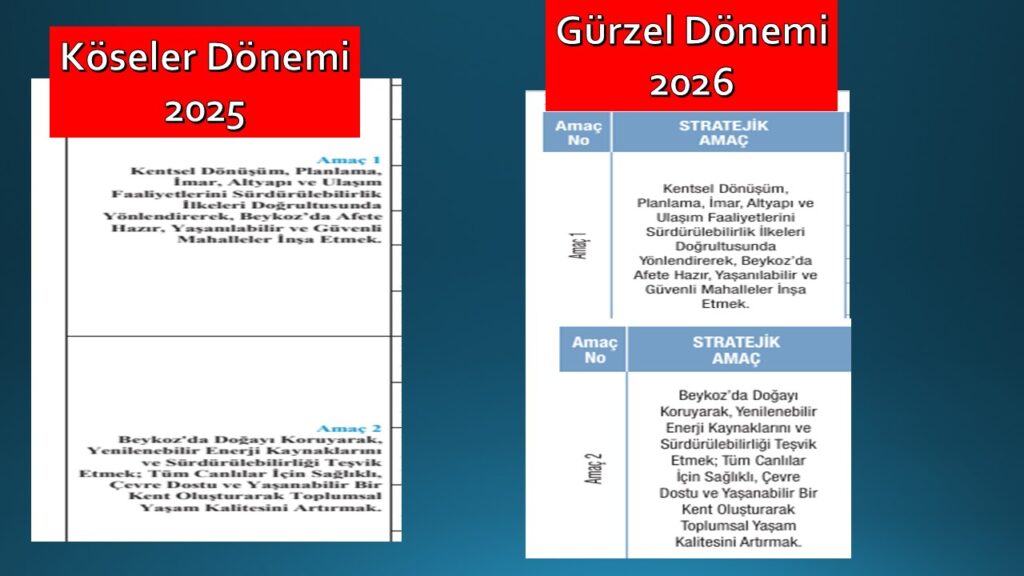 22.01.2026- Özlem Vural Gürzel yönetimindeki Beykoz Belediyesi’nin 2026 yılı performans programı açıklandı. Performans programında yer alan hedefler Alaattin Köseler döneminde çıkartılan 2025 performans programındaki 8 hedef ile bire bir aynı çıktı.