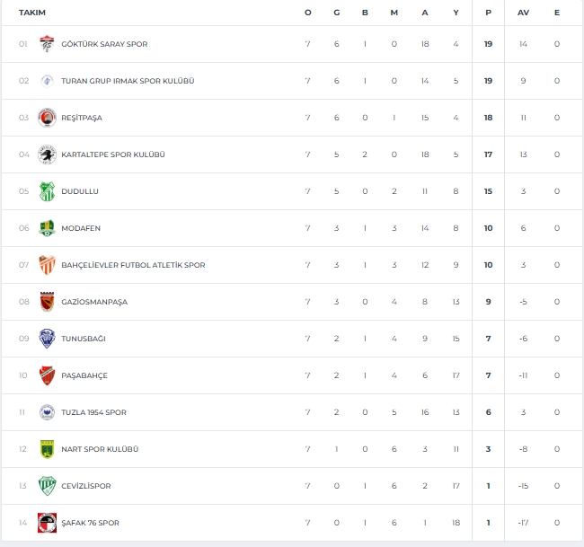İŞTE PAŞABAHÇE’NİN YER ALDIĞI 5. GRUPTA SON PUAN DURUMU