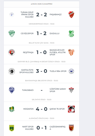 06.10.2025- İstanbul Süper Amatör Lig ilk hafta müsabakaları oynandı. 4 Takımla temsil edildiğimiz SAL’da 2 temsilcimiz berabere kalırken, 2 temsilcimiz de galibiyetle sahadan ayrıldı.
